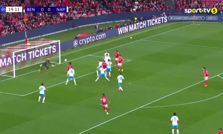 Minuto 20: marca o Benfica! Richard Ríos faz o 1-0! Bola picada para a área por Dahl, Ivanovic ganha um duelo pelo ar e a bola sobra para Ríos, que desvia de forma subtil do guarda-redes